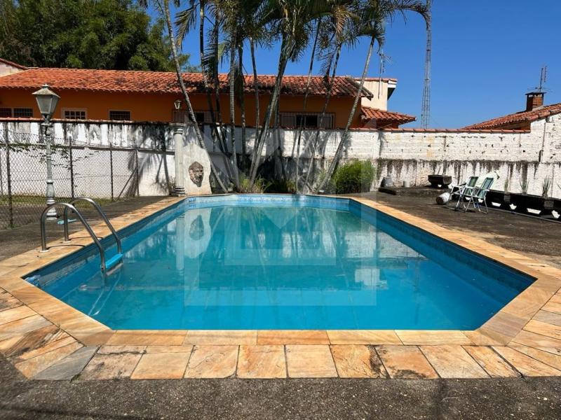 - Benfeitorias: Casa de tijolos a vista avarandada com 03 dormitórios, salão com churrasqueira, piscina, quadra, portaria e barracão para ferramentas